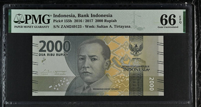 Indonesia 2000 Rupiah 2016 / 2017 P 155 b Gem UNC PMG 66 EPQ