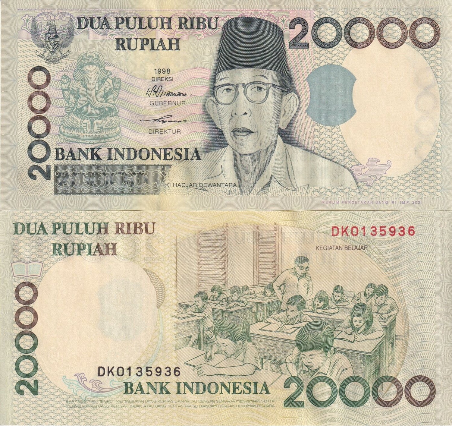 Indonesia 20000 Rupiah 1998/2001 P 138 d UNC