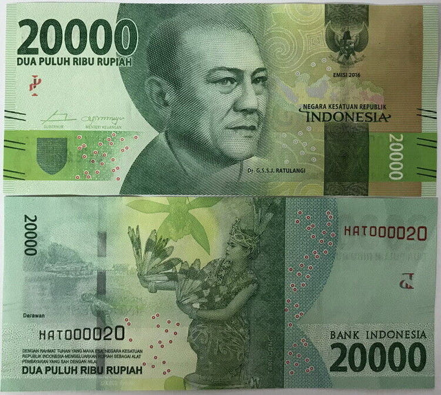 Indonesia 20000 Rupiah 2016 P 158 Double Digit # 20 AUnc