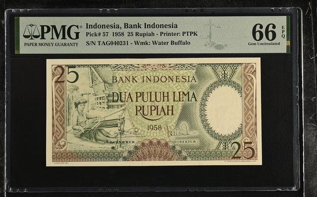 Indonesia 25 Rupiah 1958 P 57 Gem UNC PMG 66 EPQ