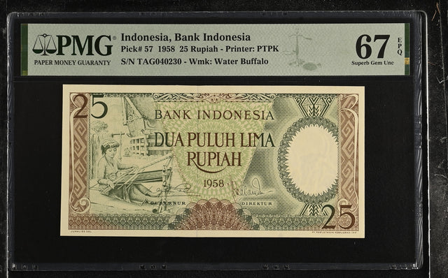 Indonesia 25 Rupiah 1958 P 57 Superb Gem UNC PMG 67 EPQ