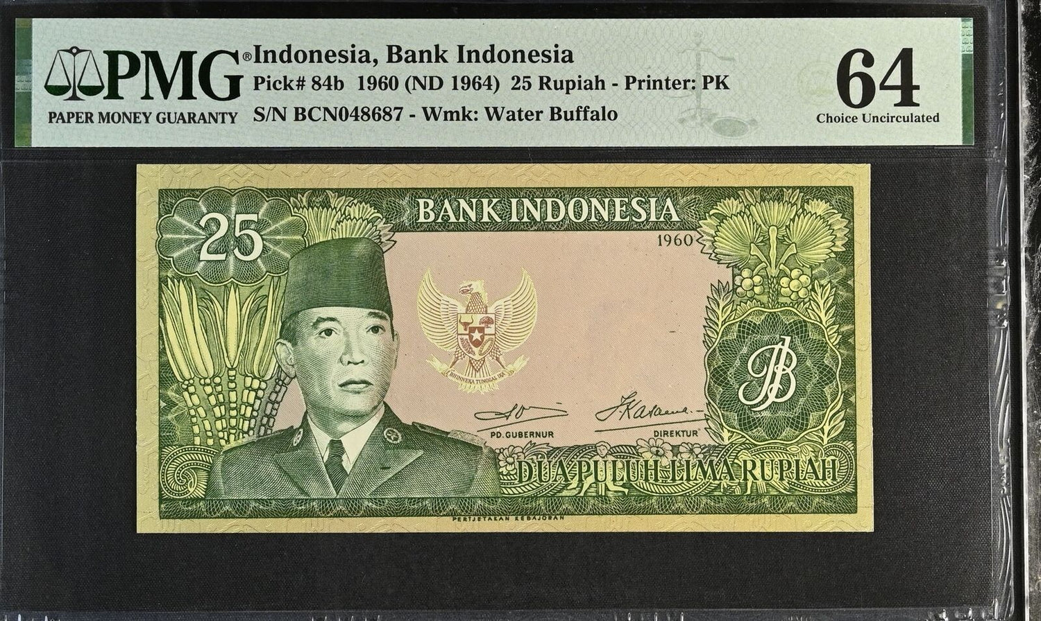 Indonesia 25 Rupiah 1960 ND 1964 P 84 b Choice UNC PMG 64