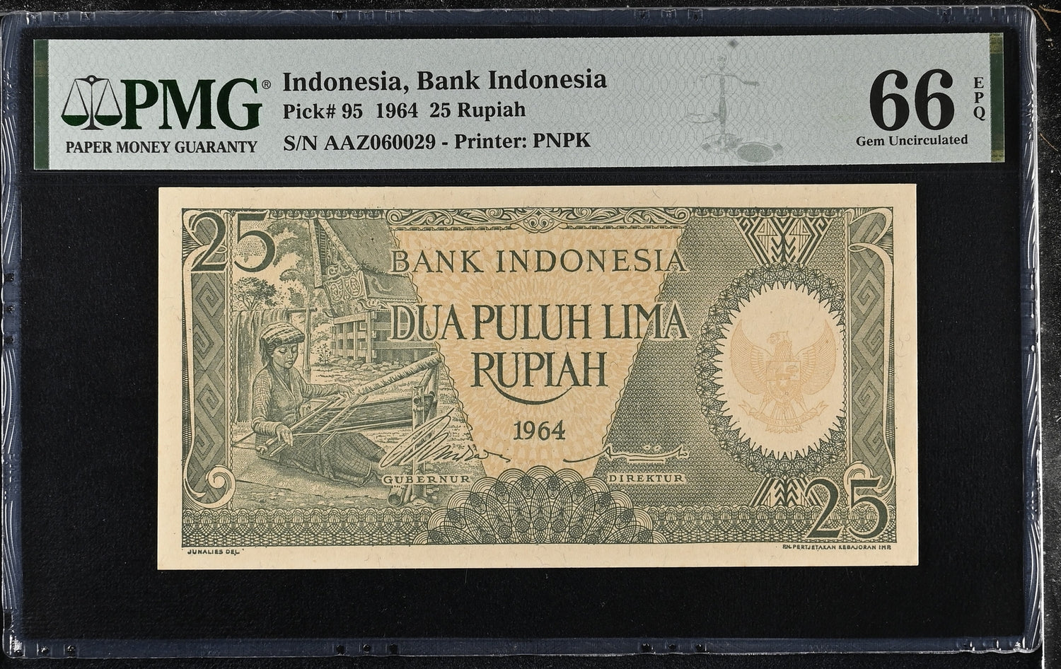Indonesia 25 Rupiah 1964 P 95 Gem UNC PMG 66 EPQ
