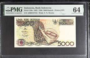 Indonesia 5000 Rupiah 1992 / 1996 P 130 e Choice UNC PMG 64