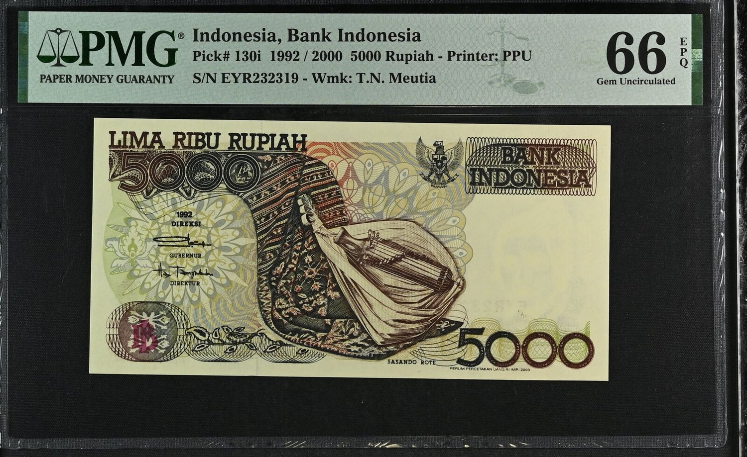 Indonesia 5000 Rupiah 1992/2000 P 130 i Gem UNC PMG 66 EPQ