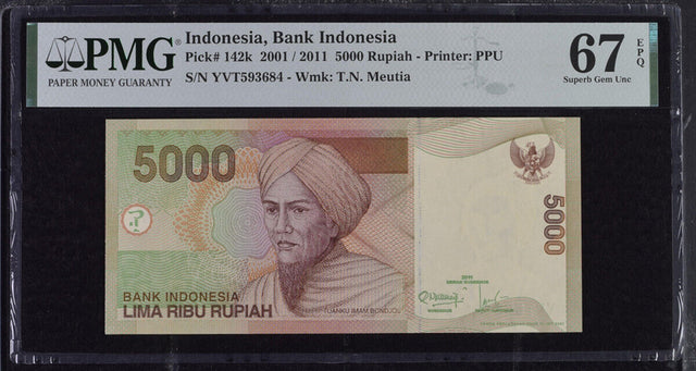 Indonesia 5000 Rupiah 2001/20011 P 142 k Superb GEM UNC PMG 67 EPQ