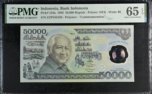 Indonesia 50000 Rupiah 1993 P 134 a Polymer Gem UNC PMG 65 EPQ
