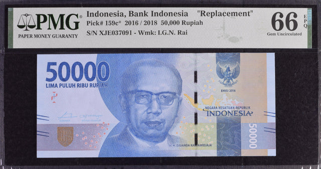 Indonesia 50000 Rupiah 2016/2018 P 159 c* Replacement Gem UNC PMG 66 EPQ