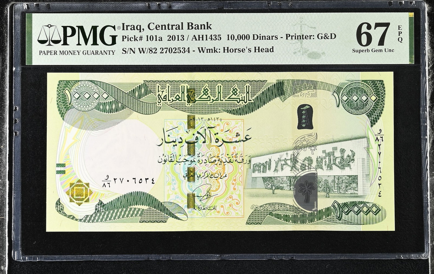 Iraq 10000 Dinars 2013 P 101 a Superb Gem UNC PMG 67 EPQ