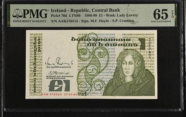 Ireland 1 Pounds 1989 P 70 d Gem UNC PMG 65 EPQ