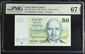 Israel 50 Lirot 1973 P 40 Superb Gem UNC PMG 67 EPQ
