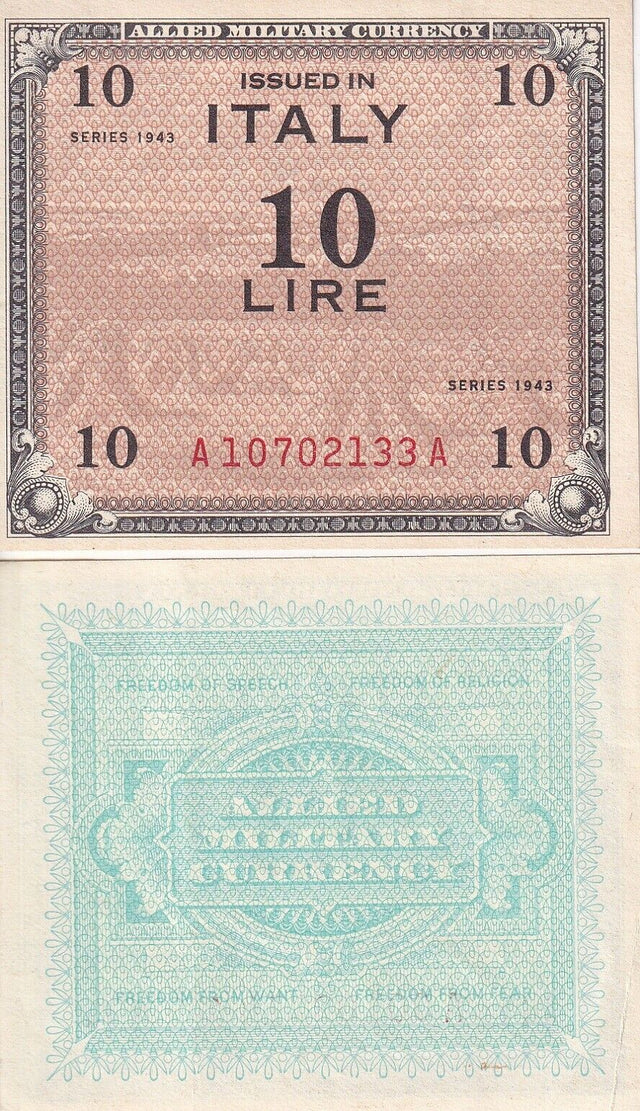 Italy 10 Lire 1943 Allied Military P M13b XF/VF