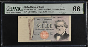 Italy 1000 Lire 1977 P 101 e Gem UNC PMG 66 EPQ