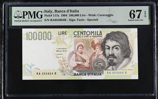 Italy 100000 Lire 1994 P 117 a Fazio & Speziali Superb Gem UNC PMG 67 EPQ