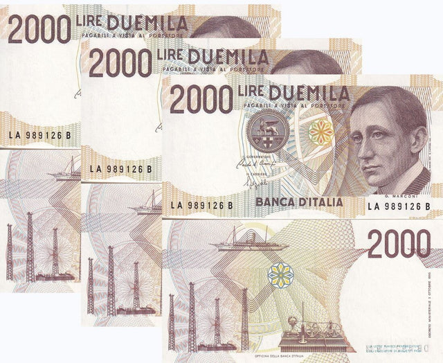 Italy 2000 Lire 1990 P 115 UNC LOT 3 PCS