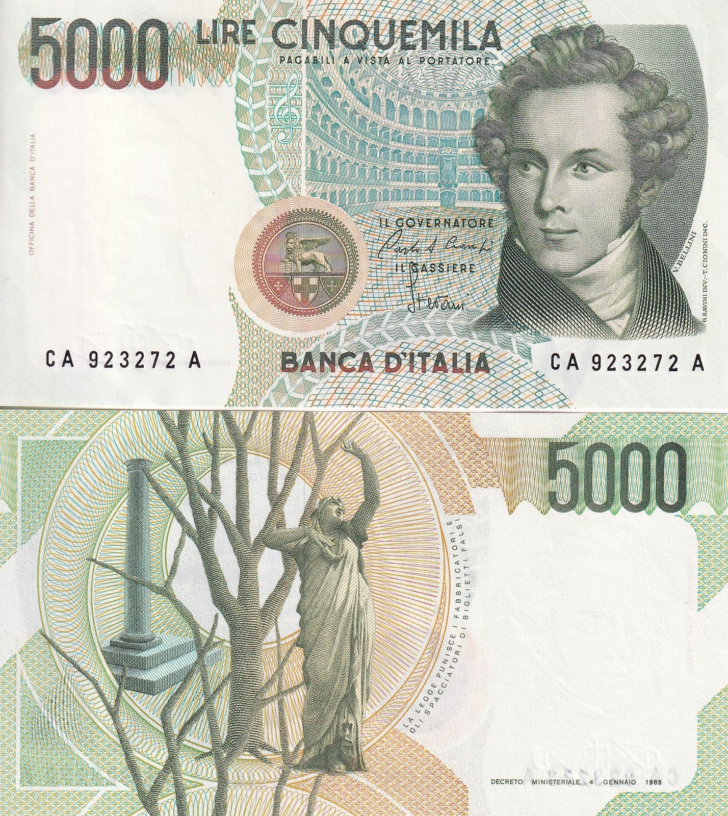Italy 5000 Lire 1985 P 111 a UNC