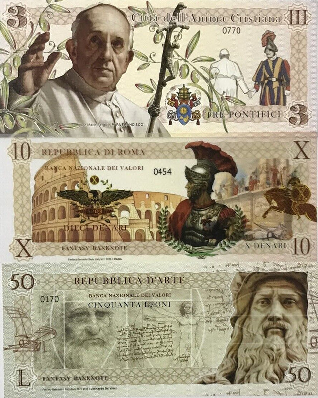 Italy Fantasy SET 3 10 50 2018 Pope Francisco Rome Da Vinci Paper Polymer