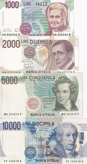 Italy Set 4 UNC 1000 2000 5000 10000 Lire 1984-1990 P 111 112 114 115