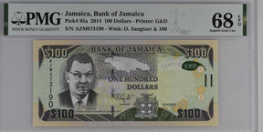 Jamaica 100 Dollars 2014 P 95 a Superb Gem UNC PMG 68 EPQ