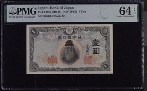 Japan 1 Yen ND 1943 P 49 a Choice UNC PMG 64 EPQ