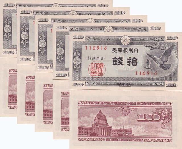 Japan 10 Sen ND 1947 P 84 UNC LOT 5 PCS