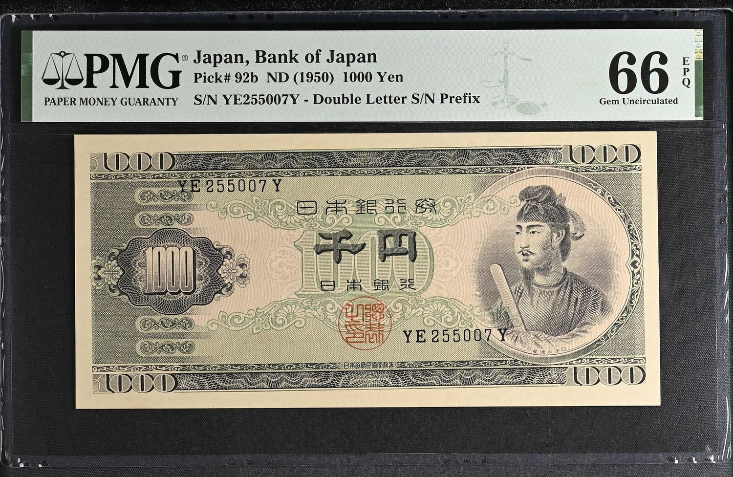 Japan 1000 Yen ND 1950 P 92 b Gem UNC PMG 66 EPQ