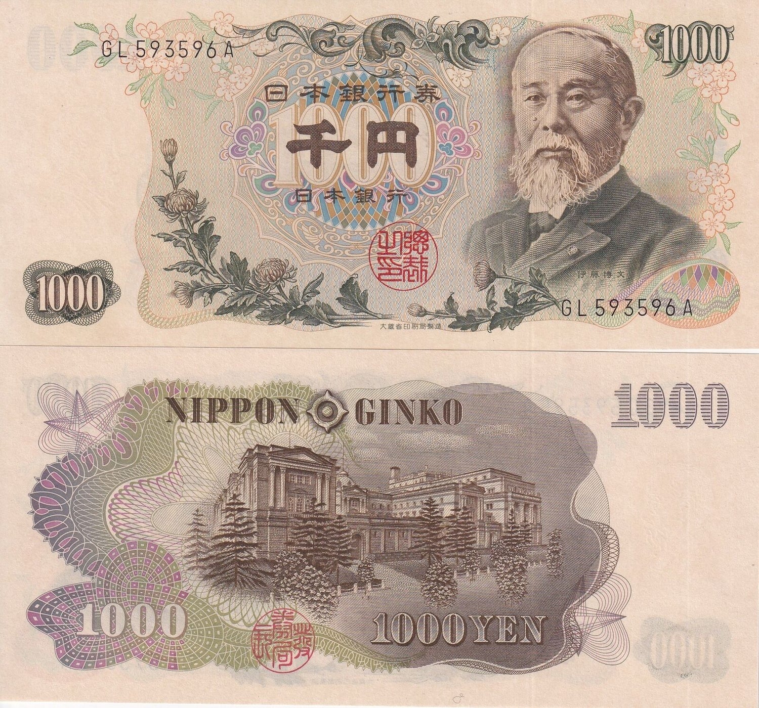 Japan 1000 Yen ND 1963 P 96 b UNC