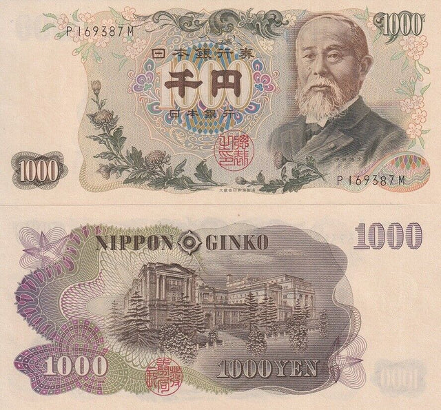 Japan 1000 Yen ND 1963 Single Letter black serial P 96 a UNC
