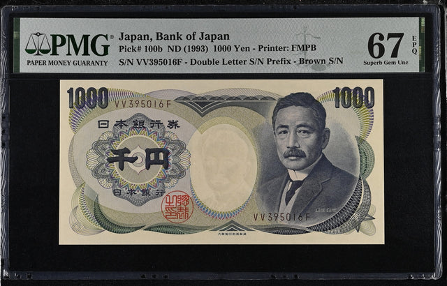 Japan 1000 Yen ND 1993 P 100 b Double Letter Superb Gem UNC PMG 67 EPQ