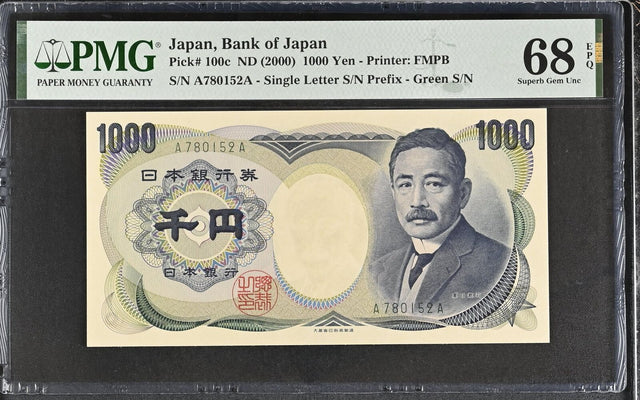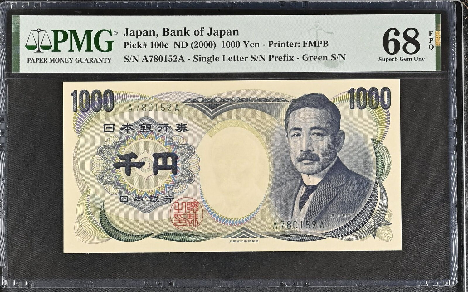 Japan 1000 Yen ND 2000 P 100 c A-A Prefix Superb Gem UNC PMG 68 EPQ