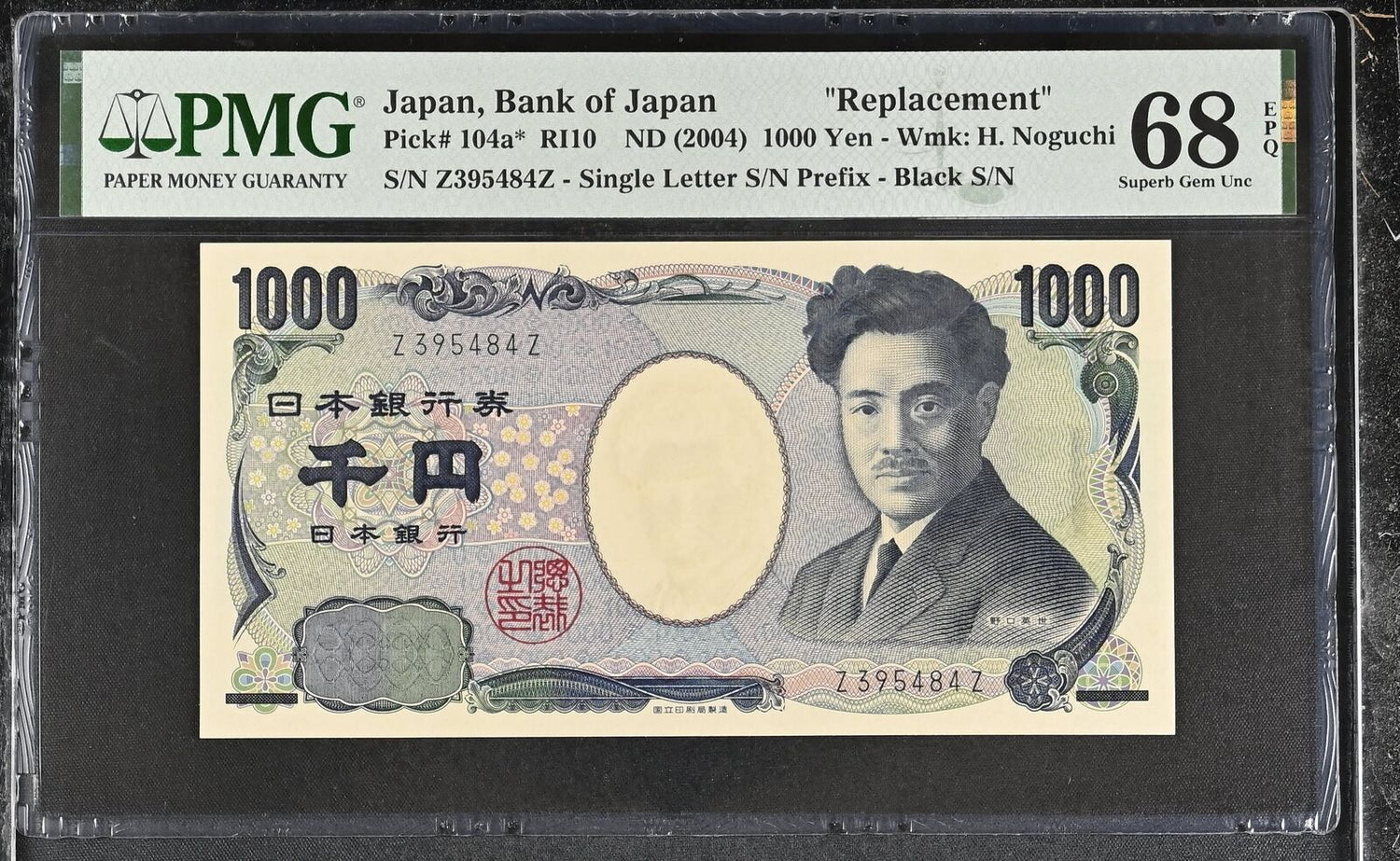 Japan 1000 Yen ND 2004 P 104 a* Replacement Z Prefix Superb Gem UNC PMG 68 EPQ