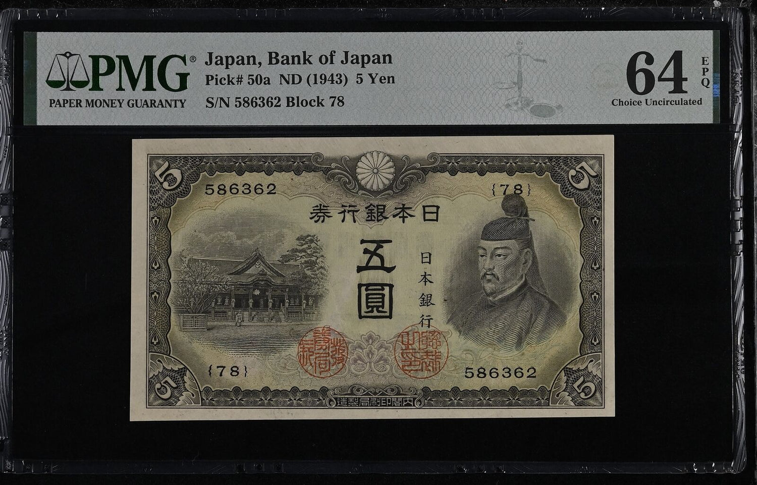 Japan 5 Yen ND 1943 P 50 a Choice UNC PMG 64 EPQ