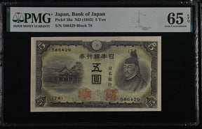Japan 5 Yen ND 1943 P 50 a Gem UNC PMG 65 EPQ