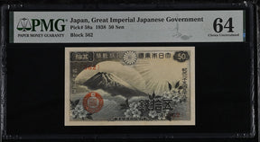 Japan 50 Sen 1938 P 58 a Choice UNC PMG 64