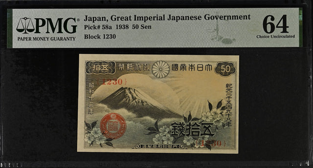 Japan 50 Sen ND 1938 P 58 a Choice UNC PMG 64