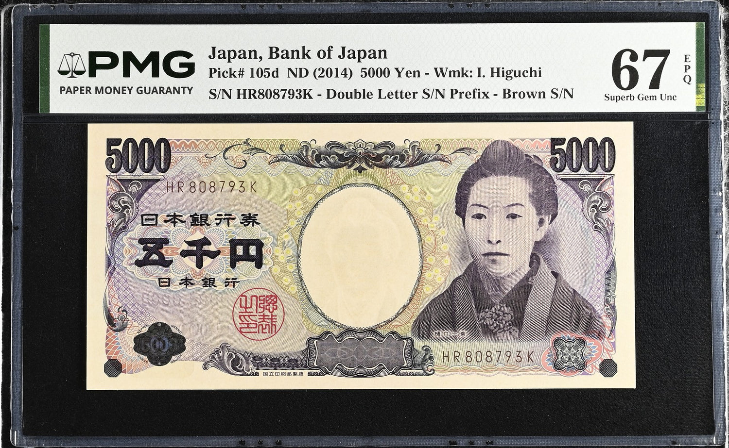 Japan 5000 Yen ND 2014 P 105 d Superb Gem UNC PMG 67 EPQ PNB