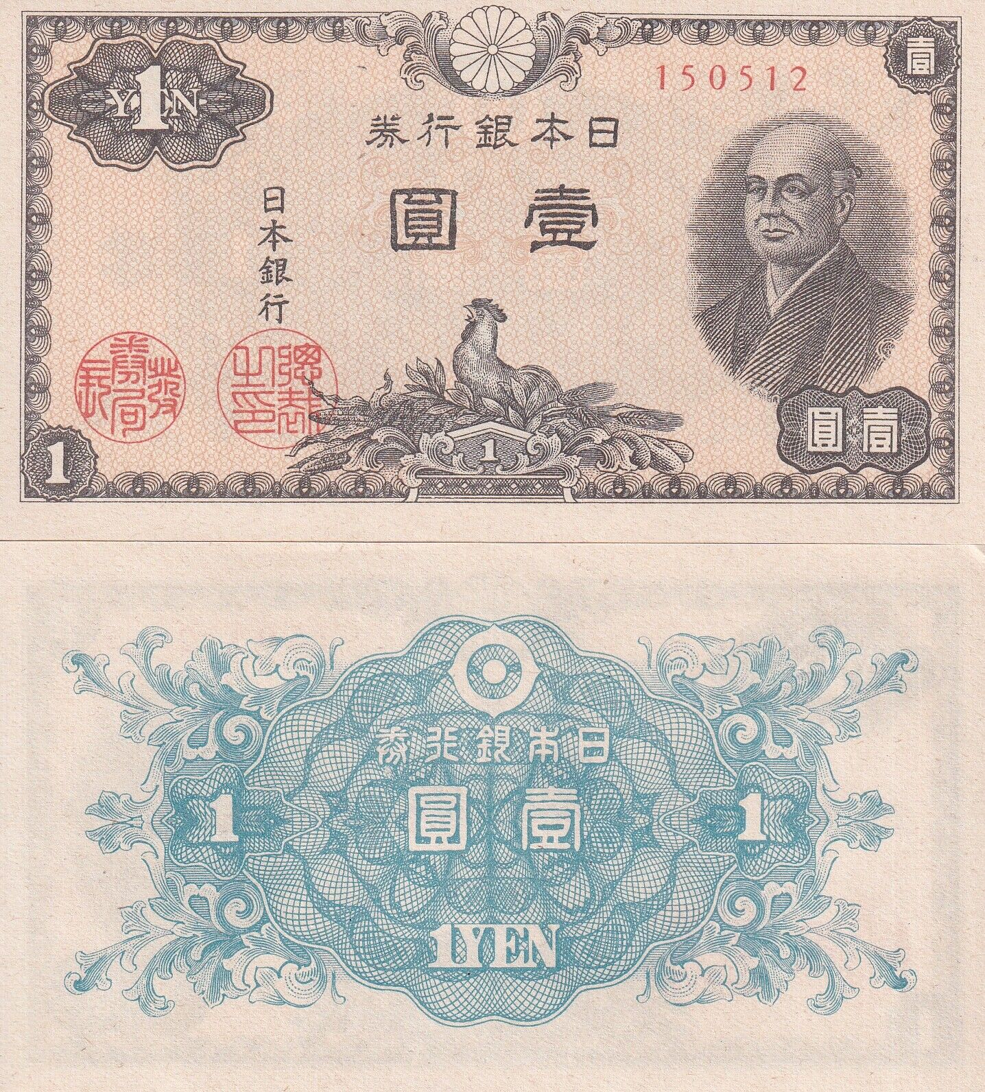 Japan Set 4 PCS 5 10 50 Sen 1 Yen 1942-1948 P 52 52 61 85 AUnc