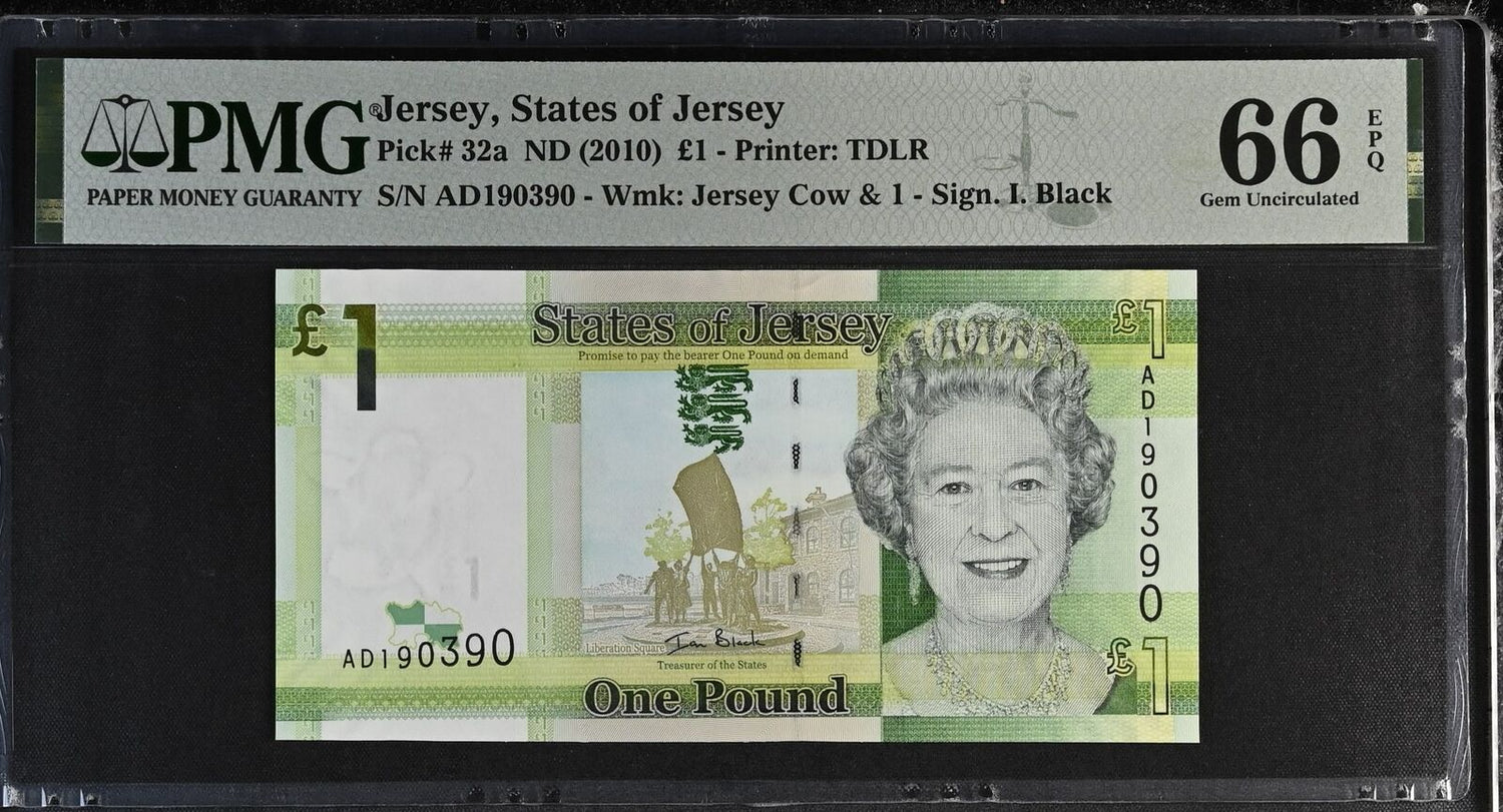 Jersey 1 Pound ND 2010 P 32 a Gem UNC PMG 66 EPQ