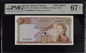Jersey 10 Pound ND 1963 P 7 s SPECIMEN Superb Gem UNC PMG 67 EPQ TOP POP