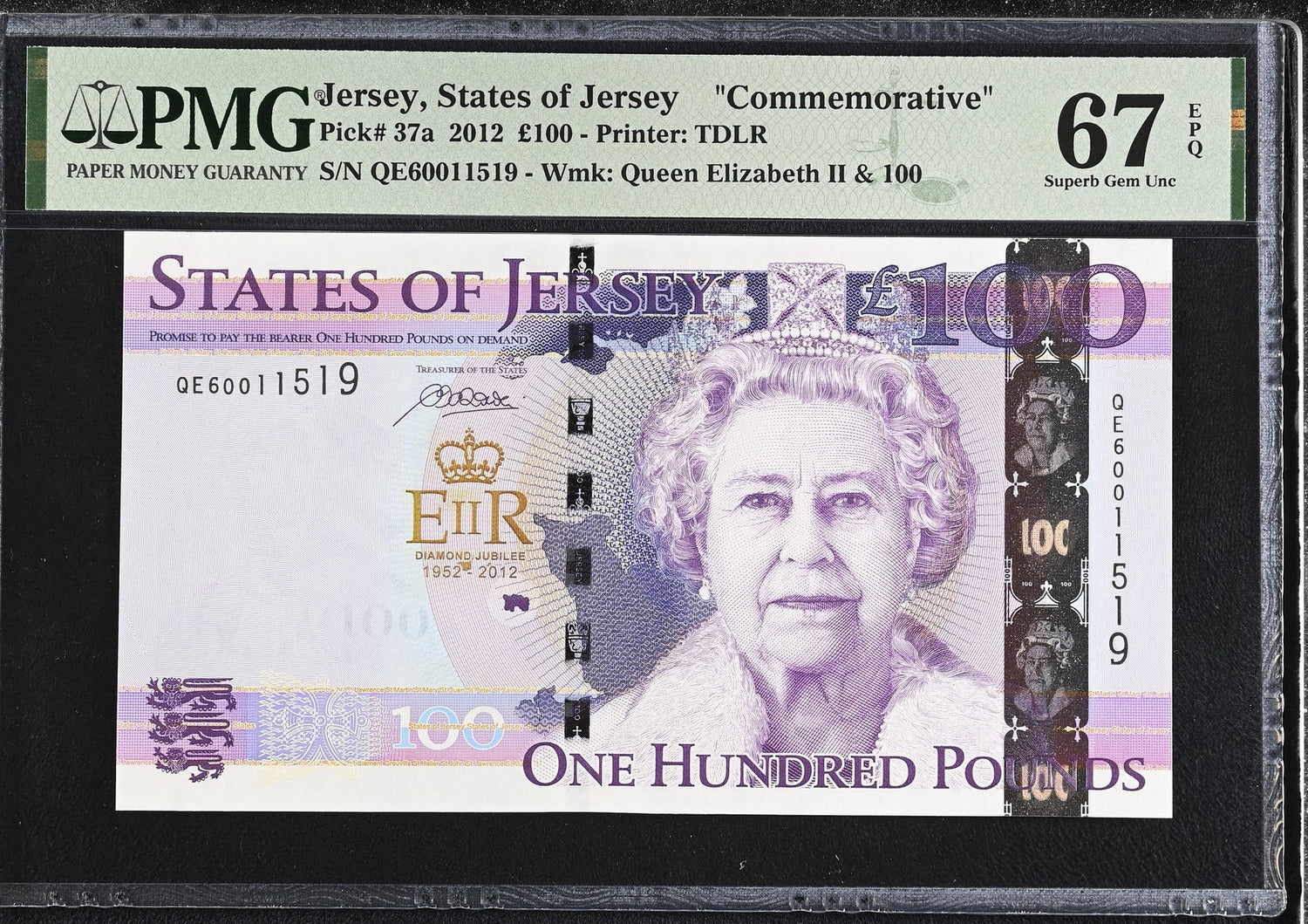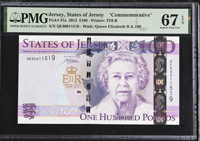 Jersey 100 Pounds 2012 P 37 a Commemorative Superb Gem UNC PMG 67 EPQ