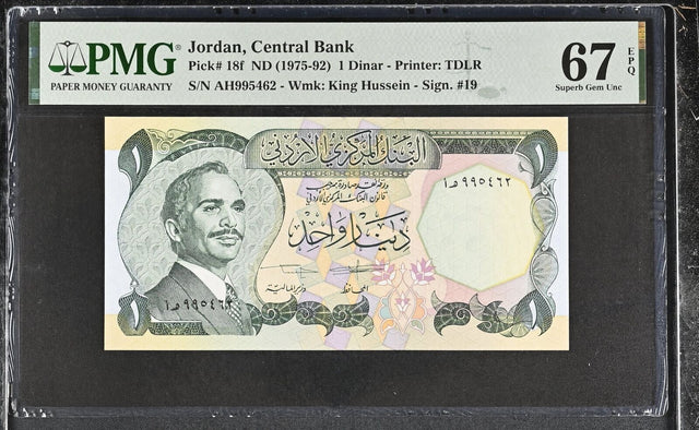 Jordan 1 Dinar ND 1975 - 1992 P 18 f Superb Gem UNC PMG 67 EPQ