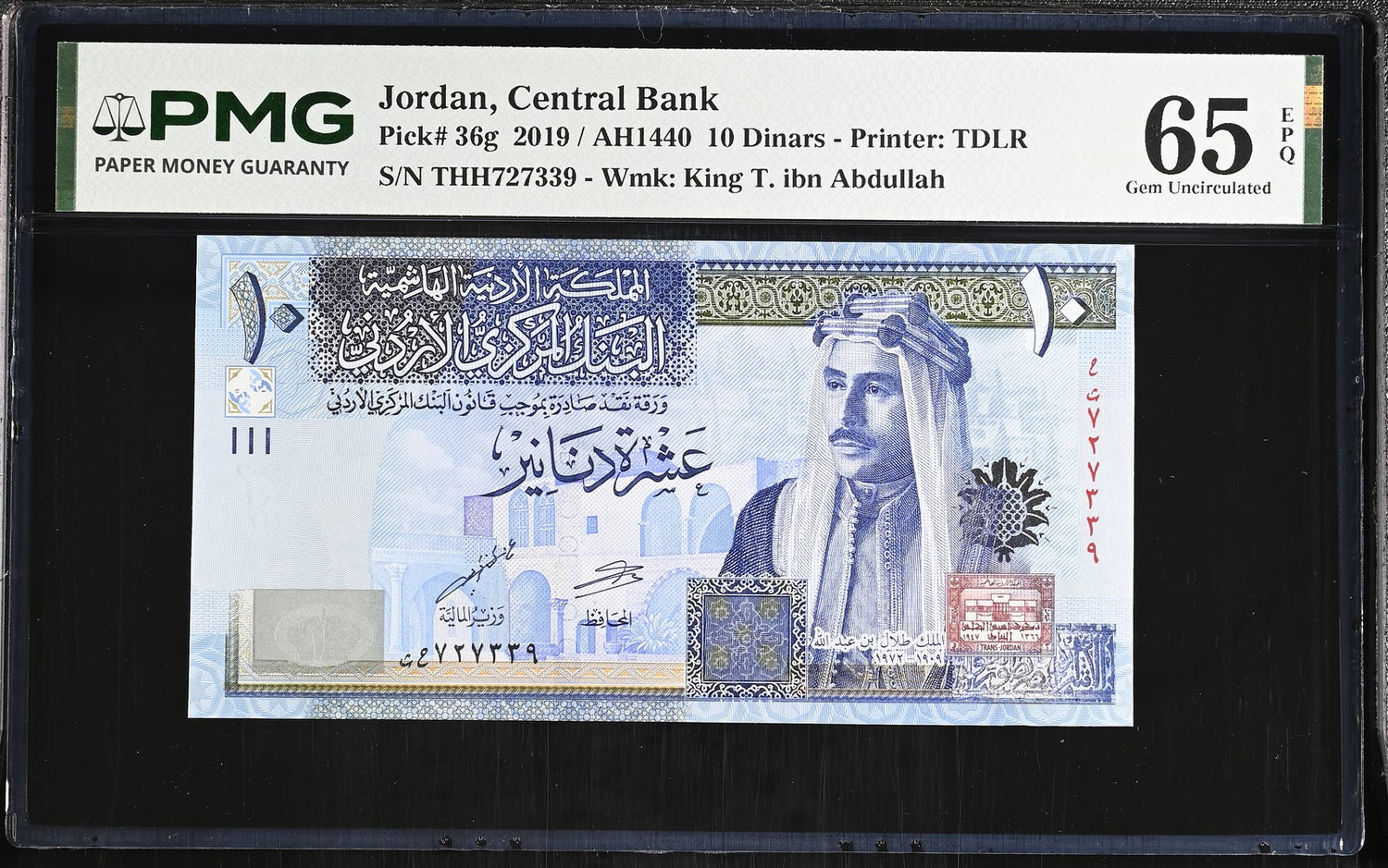 Jordan 10 Dinars 2019 P 36 g Gem UNC PMG 65 EPQ