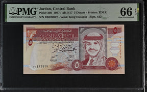 Jordan 5 Dinars 1997 P 30 b Gem UNC PMG 66 EPQ