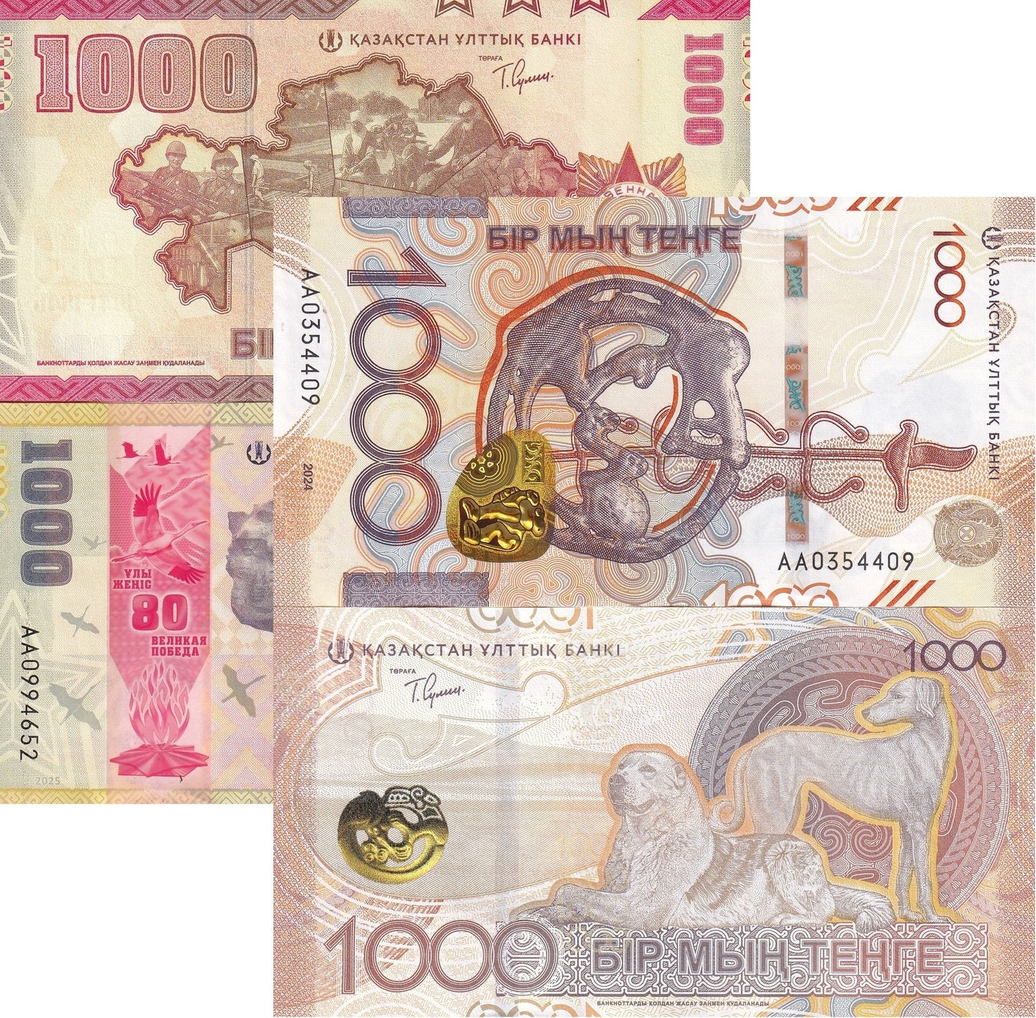 Kazakhstan set 2 UNC 1000 Tenge 2025 P 52 + 57 Commemorative New Ulttyk banki