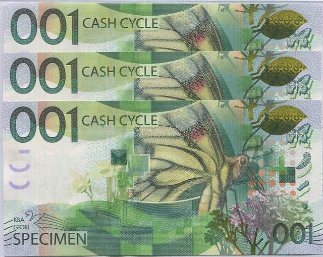 KBA Giori Butterfly 001 Cash Cycle SPECIMEN TEST NOTE Lot 3 PCS