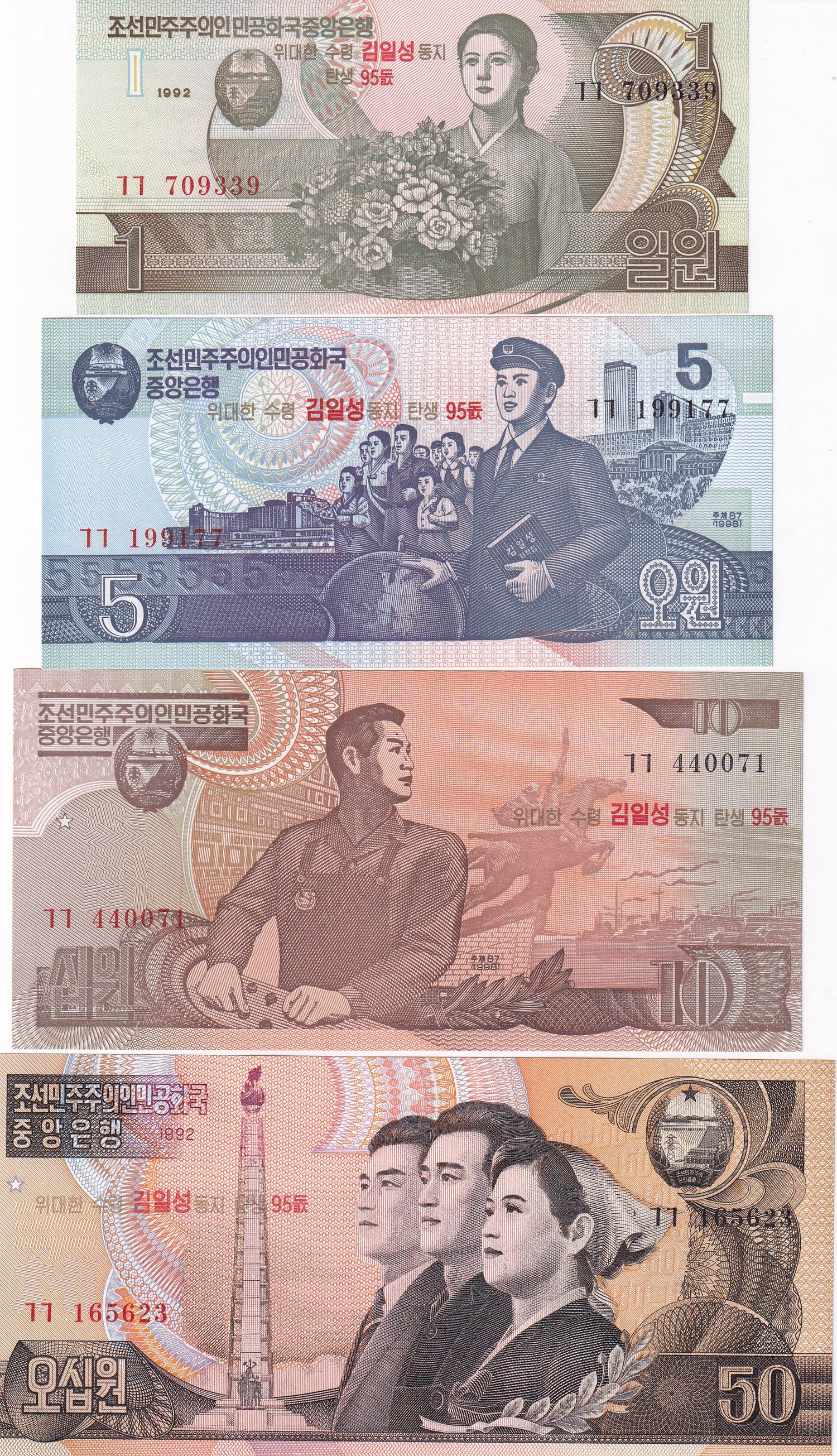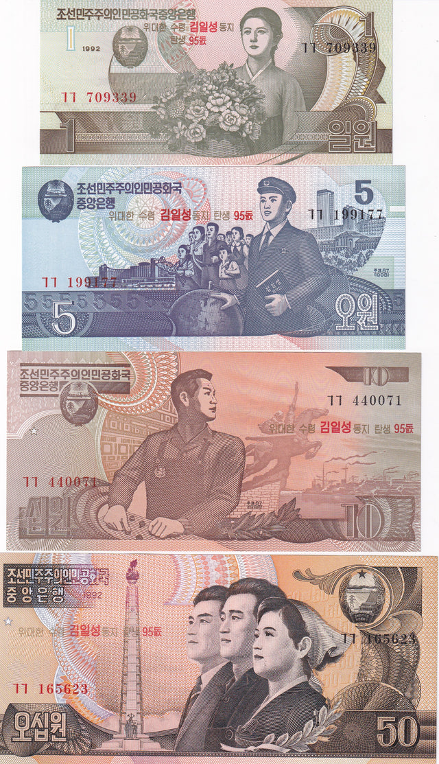 Korea set 4 UNC 1 5 10 50 WON P 49 50 51 52 Commemorative 95th