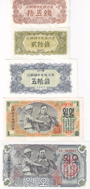 Korea set 5 AU-UNC 15 20 50 Chon 1 5 Won 1947 P 5 6 7 8 9
