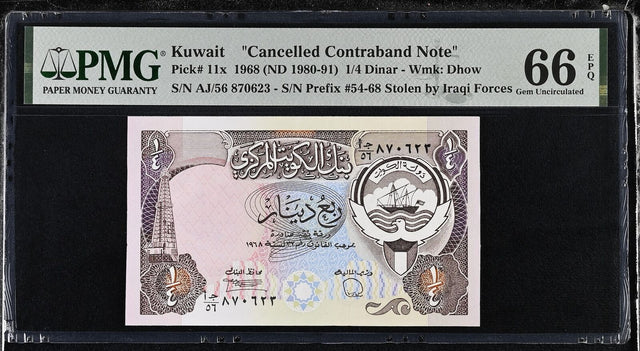 Kuwait 1/4 Dinar 1968 ND 1980-91 P 11 x Gem UNC PMG 66 EPQ