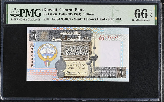 Kuwait 1 Dinar 1968 ND 1994 P 25 f Gem UNC PMG 66 EPQ