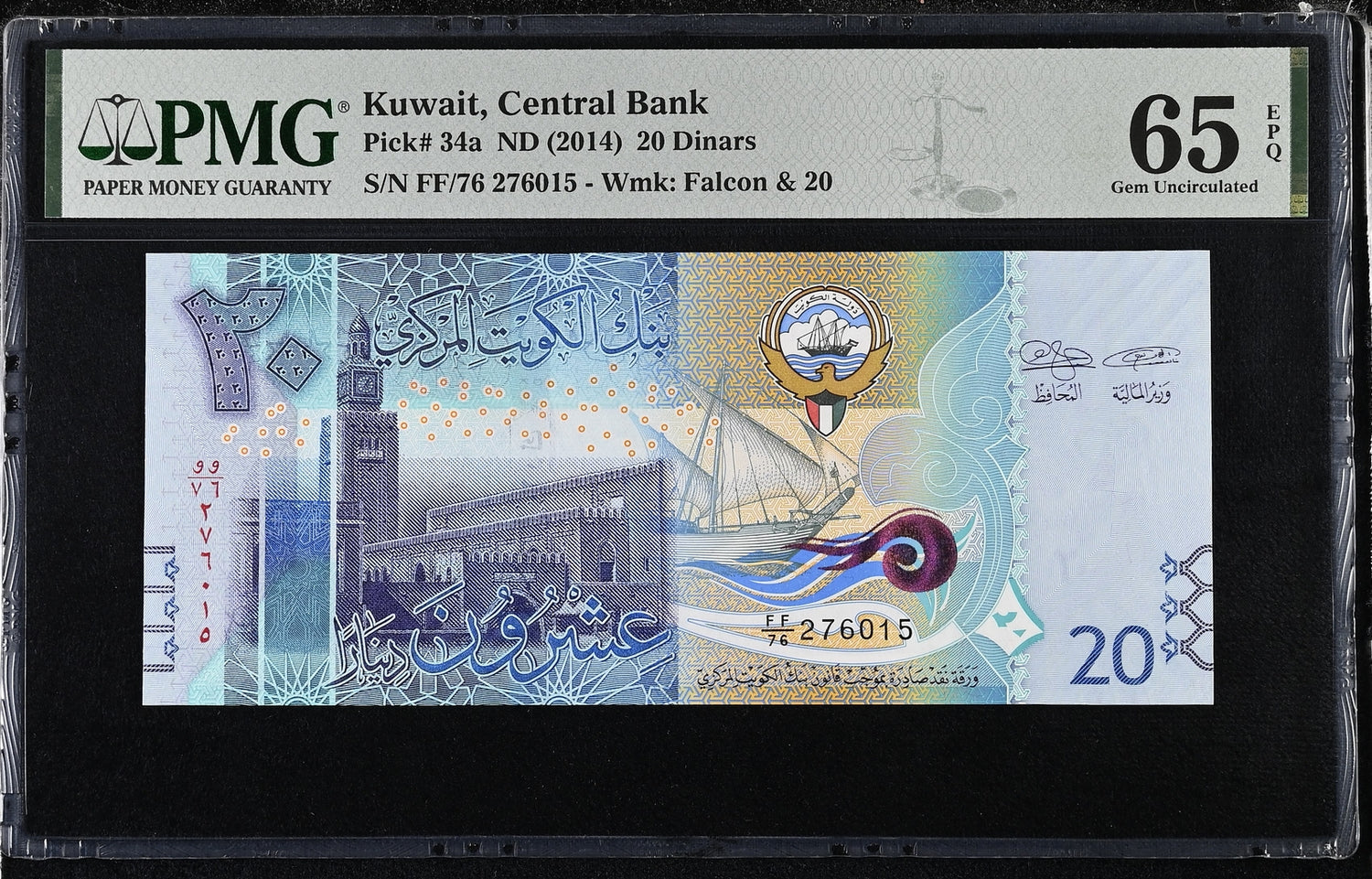 Kuwait 20 Dinar ND 2014 P 34 a Gem UNC PMG 65 EPQ